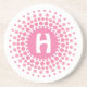 Stylish monogram stone coasters, with a dotted pink and white design. The graduating dots form circles around the middle monogram text area. Personalise with the letter of your choice. Great coasters for any room of the house, and a set would make a lovely gift for any occasion.