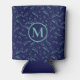Elegant can cooler with your monogram and an stylish hand drawn berry illustration in turquoise teal green on a navy blue background. The background colour can be changed to any colour you would like by clicking on the 'customise further' button. If you would like a design in different colours or on matching products, please contact us at aquipoppy@icloud.com