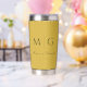Sip in style with this metallic gold insulated tumbler personalized with a stylish monogram and couple’s names. Its shimmering design adds a luxurious, custom touch while keeping drinks hot or cold for hours. Crafted from durable materials with a secure lid, it’s perfect for home, office, or on-the-go use. An ideal gift for couples or special occasions.