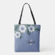Stylish Monogrammed Name Initial Floral Dusty Blue Tote Bag
