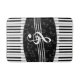 A stylish musical design in grey, black and white with a large treble clef in the centre with curved piano keys creating a border at the top and bottom of the design with a subtle pattern of grey musical notes in the background. An eye-catching music gift for the pianist, music lover or musician.