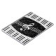 A stylish musical design in grey, black and white with a large treble clef in the centre with curved piano keys creating a border at the top and bottom of the design with a subtle pattern of grey musical notes in the background. An eye-catching music gift for the pianist, music lover or musician.