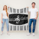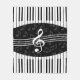 Stylish musical note clef and piano keys design in black white and grey with dark grey musical notes on black in the background. great gift for any music lover or budding musician
