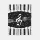 Stylish musical note clef and piano keys design in black white and grey with dark grey musical notes on black in the background. great gift for any music lover or budding musician