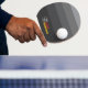 A simple and cool design for a table-tennis-paddle... to personalize with your own first and last name, highlighting parallel stripes in a gradient from dark gray to light gray.
