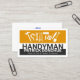 Cover features an upper light brown layer that is accentuated by a creative handyman tools design. The white layer underneath has the job title "HANDYMAN" which overlaps with your prestigious name. You can change the caption remarks to the job title to suit your own service needs. Near the base of the card is the contact details.