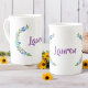 Elevate your or your loved one's coffee mug collection with our Stylish Personalized Mug. It makes a chic gift idea that's sure to delight. This beautiful mug features rustic blue, green, and purple watercolor floral segments, creating an elegant and timeless design. In the center, you'll find a lovely lavender cursive script custom name—perfect for adding a personal touch. The sample name "Lauren" can be effortlessly replaced with a custom name of your choice. With its cute blue flowers and girly lettering, this mug is a wonderful and practical gift idea for her, especially if she's of a romantic and sweet nature.💐 Start your day with a touch of elegance and thoughtfulness. This personalized mug is a daily reminder of your appreciation for your loved one's unique charm.