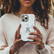 Stylish and beautiful, this unique monogram iPhone case design displays the initial of your first name in both a simple serif font and an elegant calligraphy font in the background. Your name is displayed below your monogram initial in this unique typography custom design. The three elements blend together with a sophisticated harmony and create your own personal branding logo. Shown here with a clean white background with monogram elements in neutral beige and dark charcoal grey.