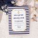 Customize this stylish modern Nautical Wedding Invitation with a gold anchor. Please note that gold in this design is a flat color print and is not an actual gold color. Blue and white striped design, set as a template for an easy online customization. Available also as a instant digital download. In a collection are also matching RSVP, Guest Information Directions Card, Bridal Shower Invitation, Program Card, Rehearsal Dinner Invitation and Thank You Tag Cards Favor Stickers available.