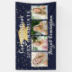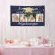 Celebrate your graduate with this custom colour banner sign (shown in navy blue) featuring 4 photos and the title CONGRATULATIONS YEAR GRADUATE in a modern, hand lettered brush script calligraphy typography and personalised with your graduate's name. The design features a a faux metallic gold foil graduation cap or mortarboard and gold confetti. CHANGES: Change the background colour to a school colour or coordinating party theme colour as well as any text font style, size, colour or placement. Ideal to use for a group graduation party as well. ASSISTANCE: For help with design modification or personalisation, colour change, resizing or transferring the design to another product, contact the designer BEFORE ORDERING via the Zazzle Chat MESSAGE tab or email makeitaboutyoustore@gmail.com.