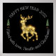 Elegant New Year's greeting sticker poster with black colour and a luminous llama drawing expressing the New Year