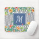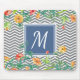 Stylish Orange Floral Chevron Chic Blue Monogram Mouse Pad