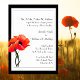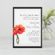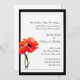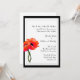 Stylish custom wedding invitation done in white, with a black and silver tone border, around the card and a beveled looking edge to the text area. Elegant graphic artwork of two tangerine coloured poppies decorate the left side of the invitation. Text in black is ready to personalise for your big day.