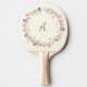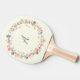 This stylish ping pong paddle feature a pretty floral wreath with delicate flowers in earthy pastel shades of pink, yellow, and blue, personalised with your initial.