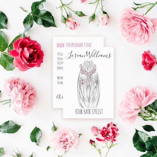 Stylish Pastel Hair Stylist Braid Hairstyle Flower Business Card