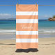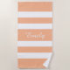 Custom Name Stylish Peach Pink Stripes Beach Towel.