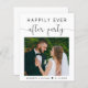 Budget-friendly elopement or private wedding announcement and wedding reception invitation. The front features your wedding day photo, "Happily Ever After Party" in a mix of simple typography and a stylish script with swashes and your names and wedding date joined together with a heart. On the back, personalise your message and reception invitation details and add your names in a signature-like script.
