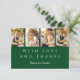 Modern Photo Strip Simple Emerald Green Jewel Tone Wedding Thank You Card - A chic and elegant way to express your gratitude. This thank you card features a four-photo strip on the front and one photo on the back, totalling five photos. Perfect for couples looking to send a heartfelt and stylish thank you to their loved ones. The design blends sleek white block text with delicate script calligraphy on a deep emerald green, jewel tone background, offering a timeless and refined look. Personalise this card by adding your own five photos and customising the message to make it uniquely yours.