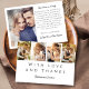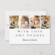 Modern Photo Strip Wedding Thank You Card - A chic and distinctive way to express your gratitude. This wedding thank you card features a four-photo strip on the front and one photo on the back, totalling five photos. Ideal for couples seeking to send a stylish, heartfelt thank you to friends and family in a unique manner. The design combines sleek, elegant block text with beautiful script calligraphy, creating a timeless and sophisticated feel. Personalise this template by adding your own five photos and tailoring the message to fit your style.