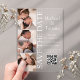 stylish photobooth modern white script 3 photos qr code Save the Date Acrylic Invitations