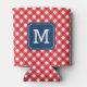 Stylish Picnic Red Gingham Personalise Monogram Can Cooler
