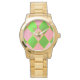 Stylish Pink and Green Gold Argyle Monogram Watch