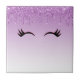 A ceramic tile with a trendy stylish design. The background is a purple gradient colour with an image of fake sparkling glitter dripping down from the top. A pair of girly cute eyelashes underneath the glitter image.
