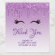 Party thank you bottle labels with a trendy stylish design. The background is a purple gradient colour with an image of fake sparkling glitter dripping down from the top. A pair of girly cute eyelashes underneath the glitter image. Personalise with your event details.