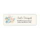 Address labels with a pretty watercolor illustration. A flower bouquet with pink and blue flowers surrounded by green leaves and sprigs.