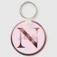 Stylish Pink Letter N Rose Gold Metallic Monogram Key Ring