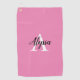 Stylish Pink Monogram Script Golf Towel, easy to personalise the name and the initial in the online personalisation template before ordering.