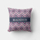 Stylish Pink Navy Ikat Diamond Pattern with Name Cushion