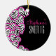 Stylish Pink Sweet 16 Zebra Heart Design Name Ceramic Tree Decoration