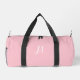 This pretty pink duffel bag is perfect for the gym or travel. The solid pink is a girly and modern design that's both simple and trendy. The monogram is editable and can be customised with the personalisation tool in the listing. The script typography of the monogram is a feminine detail.