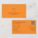 Stylish Plain Orange with Monogram and QR Code Business Card
