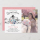 This stylish quince anos | Quinceañera party invitation has a modern vintage design featuring watercolor girl silhouette with a a pink and blue festive princess dress on a simple white background and a customisable photo.