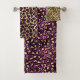 Stylish Purple and Gold Foil Leopard Spots Bath Towel Set