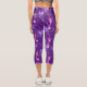 These feminine, modern capri leggings have a stylish, colourful design featuring a vibrant pink to purple floral | botanical pattern on a plain purple background. They are a great choice for sports, running, yoga or for everyday wear.