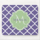Stylish Purple Quatrefoil and Name Green Monogram Mouse Pad