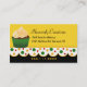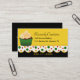 Pretty rasta coloured bakery business card done with graphic artwork of a chocolate cupcake, with yellow icing, against a golden yellow background. A scalloped banner of red, yellow and green polka dots, runs across the bottom half of the card, with a solid black bottom to the card. The back of the card is done in solid black. Text in yellow and black is ready to personalise, to suit your business needs. Personalise the text for your bakery business. Great for at home bakers too.