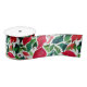 Stylish Red And Green Leaves Christmas Watercolor Satin Ribbon
