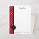 Customised Stationery/Letterhead: Traditional Red and White Dots Design/Black Bar and Monogram Frame Accent
