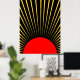 A stylish design with a vivid red sun with rays of yellow sunshine on a black background. Whether you're looking for a gift for a friend or just want something new for yourself, this is the perfect choice.