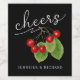 Elevate your wine presentation with our Stylish "Cheers" Wine Label, featuring retro red and green cherries accented by modern white script against a sleek black background. Personalise with your names for a unique touch. Explore matching products in our CHERRY WEDDING collection for a cohesive celebration. Cheers to unforgettable moments!