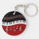 Stylish Red Black White Piano Keys and Notes Key Ring