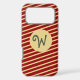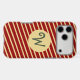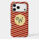 This cool golden stripes pattern over red solid colour background featuring geometric golden circle and custom monogram initials so you can add your name and personalise it with your own or loverd ones initials and names.