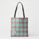 Stylish chic plaid shoulder bag in bright modern colours. Design includes a tweed pattern of overlapping layers intertwining the individual base colours and a light graphic texture to create a softer, flannel like, look. Corner tag, simple understated embellishment, printed with personalizable monogram and name. Front and back designs match. Beautifully attractive, stand-out accessory suitable for everyday use.