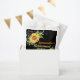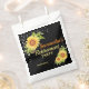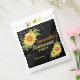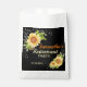 Stylish Retirement party favour bag with a black background , watercolor yellow floral sunflowers and string lights. A great item to decorate a party table for retirements, birthdays, engagement, baby shower , wedding anniversary and many more. Customise with the event then personalise with the name and date. background colour can be changed if needed