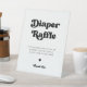 Diaper raffle game sign. A retro chic theme: adopt this slightly vintage and stylish typographic design for your shower stationery, with a classic black and white theme. Customisable text colours and backgrounds.