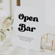 Open Bar wedding tabletop sign. A retro chic theme: adopt this slightly vintage and stylish typographic design for your wedding stationery, with a classic black and white theme. Customisable text colours and backgrounds.